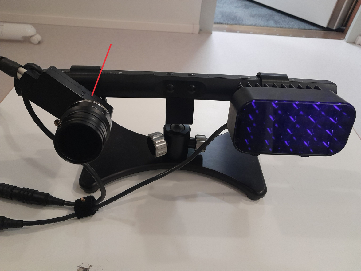 If necessary, move the whole Desktop Mount left/right slightly so that the patch of IR light is aligned with the field of view of the camera head. -