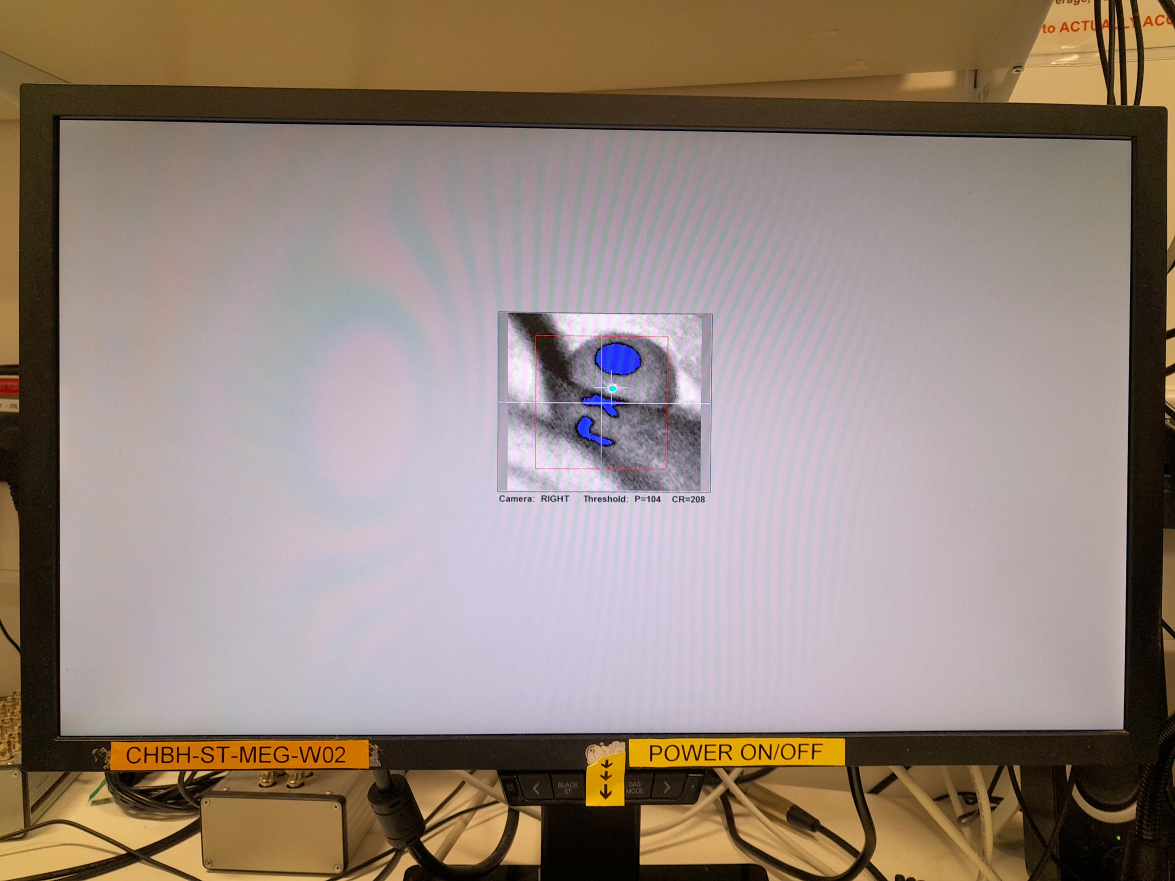 When using Psychtoolbox (PTB), the image of the eye can be thrown onto the projector screen to make focusing easier. The left/right arrows on the Stim PC toggle between wide angle view and eye focused view.