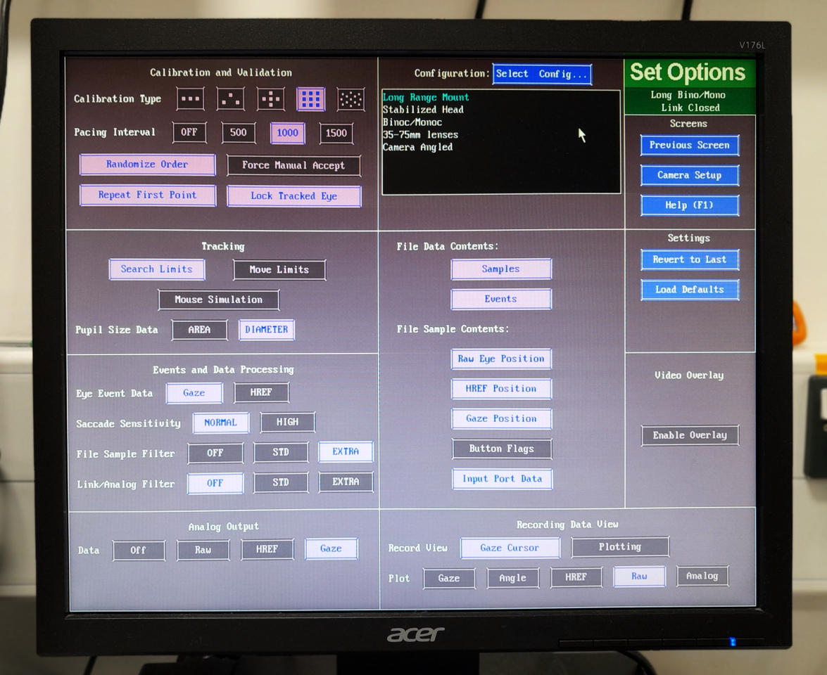 Select the appropriate EyeLink Configuration from the Set Options screen, e.g. monocular, binocular.