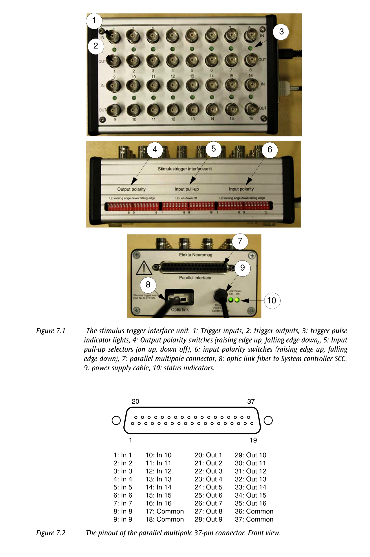 The Stimulus Trigger Interface BNC connectors and the 37-pin multipole connector are internally connected together.